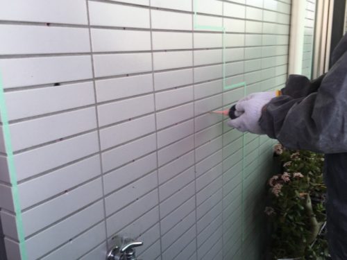 異常のある個所にマスキングテープでマークしておきます。