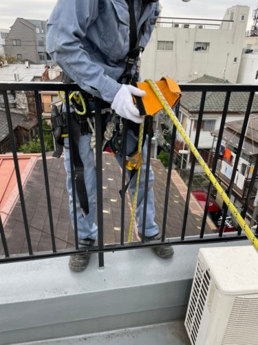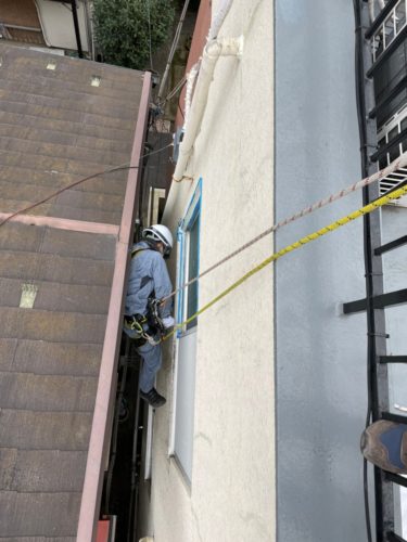 隣の建物との距離が近いため、足場を組めず、また、緊急作業であったため、