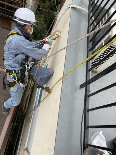コーキング材の劣化もありましたので、打ち直してまいります。