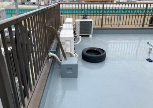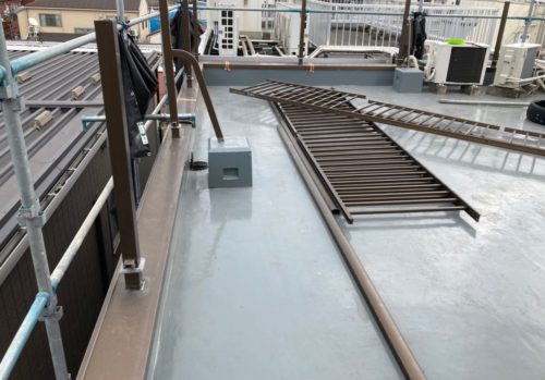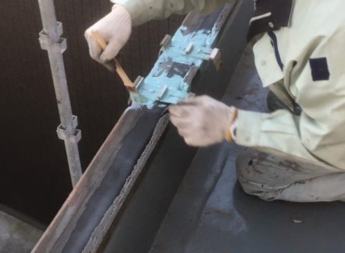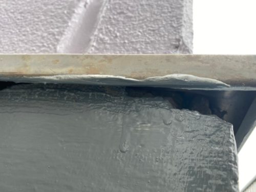 茨城県日立市「N様邸」手摺付きアルミ笠木周りの防水を行っております。