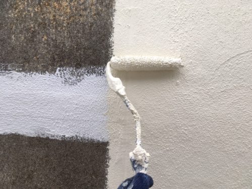補修の済んだ壁から、塗装してまいります。