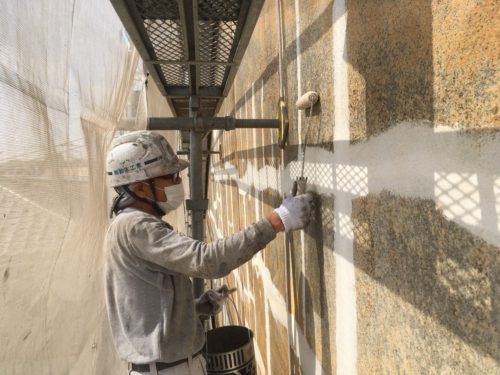補修跡を均しながら、塗装してまいります。