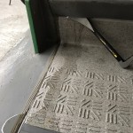 階段の床材に水が溜まっております